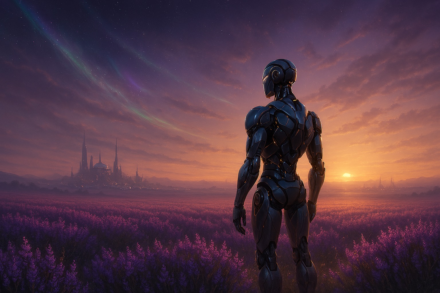 ラヴェンダーの紫煙が揺らめく丘陵に、ハニスは立ち尽くしていた。風は銀河の記憶を運び、彼の思索を鋭利に研ぎ澄ませる。ネオ・エーテルの興亡、その背後に潜むクロノ・ブルームの影──そして、ヒューが地球から持ち帰った“真実”の意味。