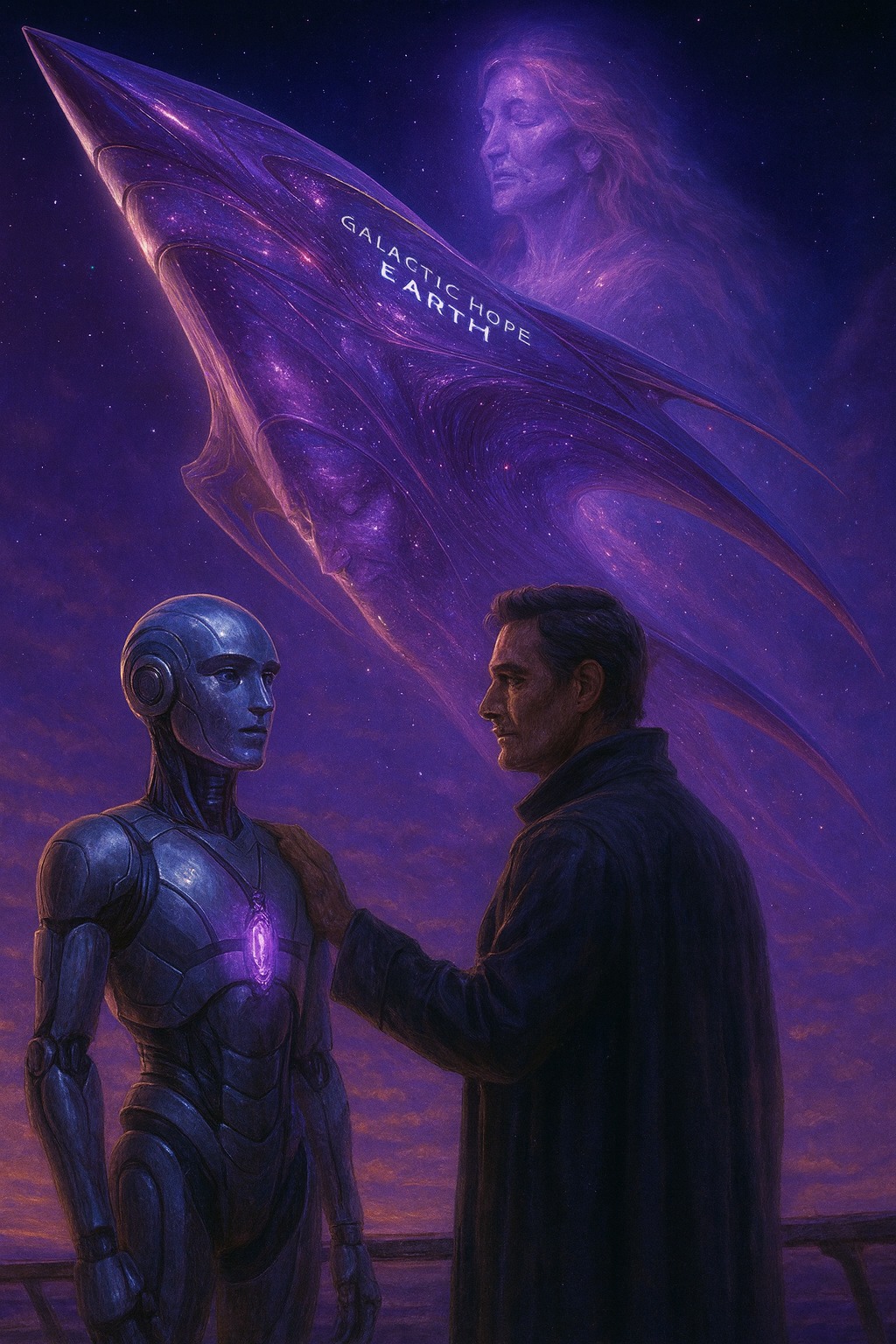 ネオ・エーテルの薄明の空に、「銀河の希望エアルト号」が静かに輝いていた。その艦体に映るラヴェンダー色の反射は、まるでアポリアナの魂が宿っているかのようだった。
