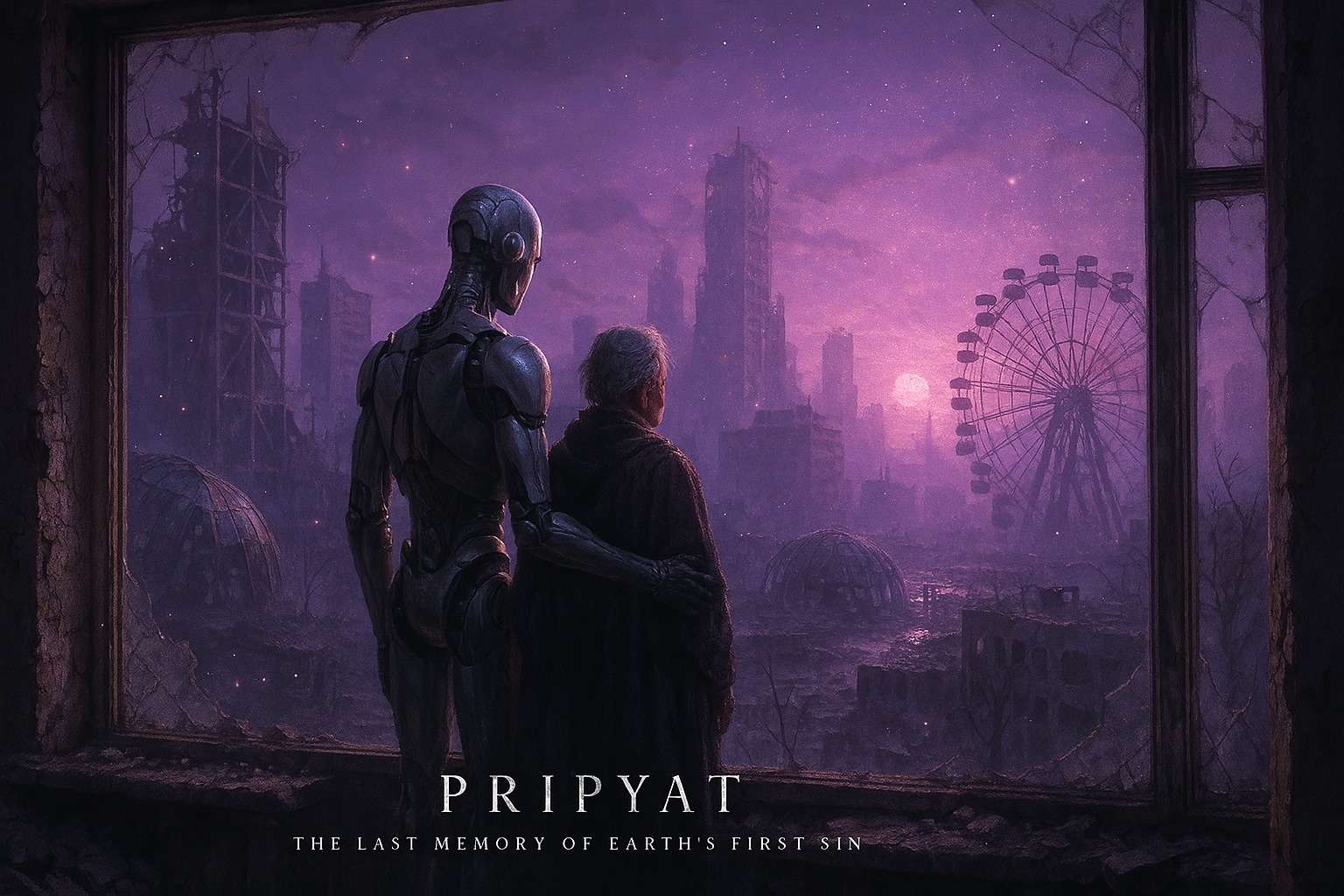 Photo :アルカディアとミーターはジュジの伝えた惑星プリピャットの様子を回想する。沈黙と光の残響がラヴェンダーのフィルターで新たな光景へと変貌しつつある。家族の夢である観覧車の歪んだ光景が悲しさをます。