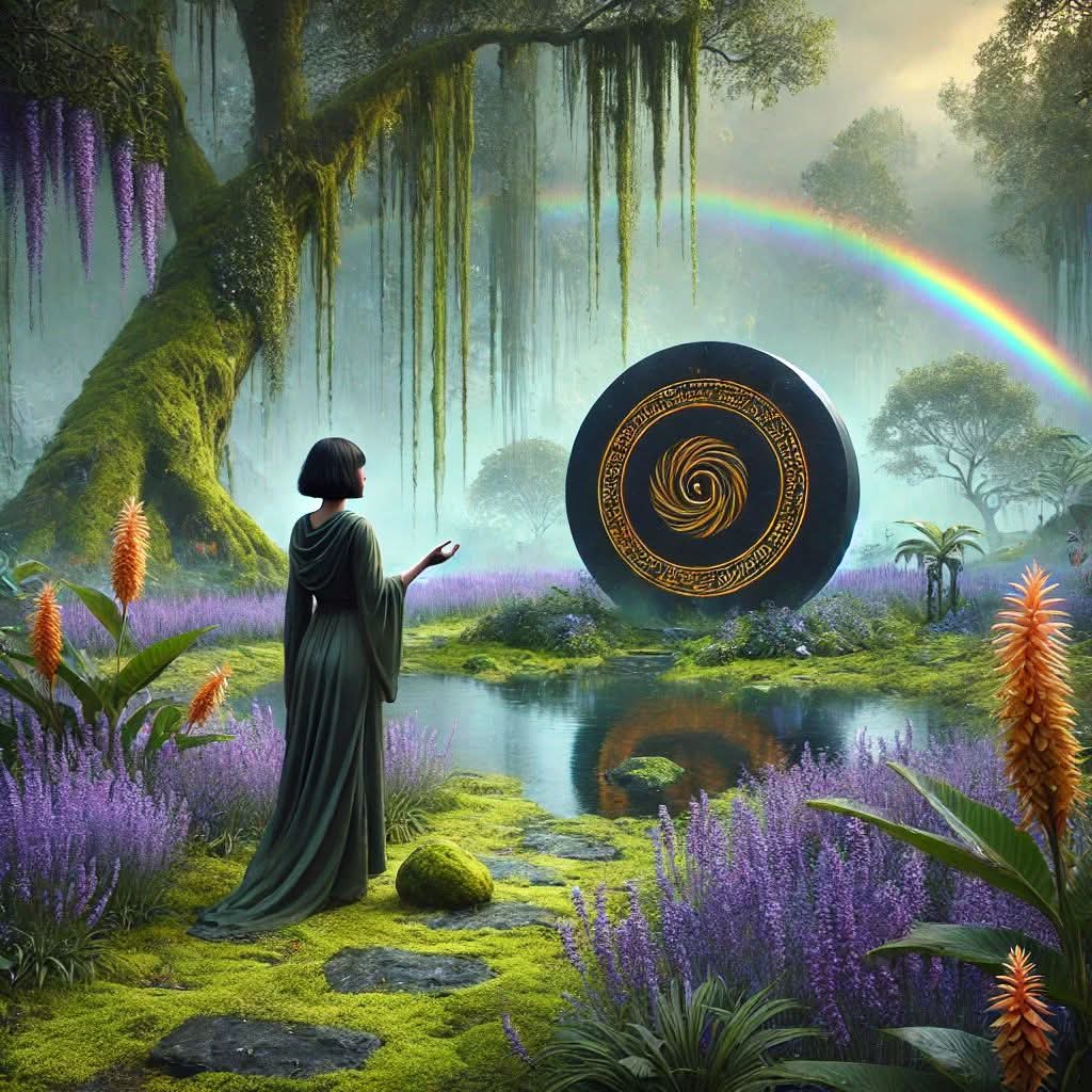 その時、空からは萌葱色の霧雨が静かに降り始めていた。公園全体が薄い霞に包まれ、泉のせせらぎと小鳥のさえずりが耳に心地よかった。空には七色の虹がかかり、幻想的な光景が広がっていた。